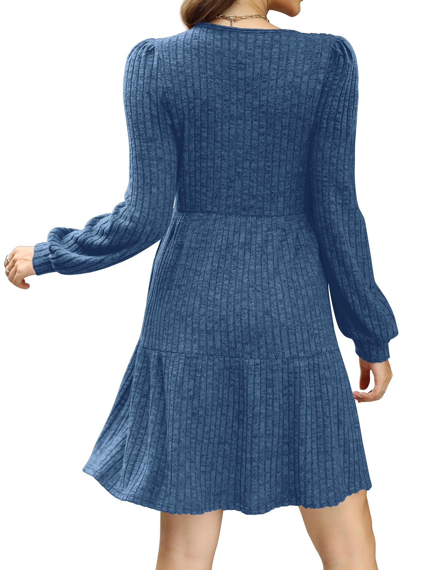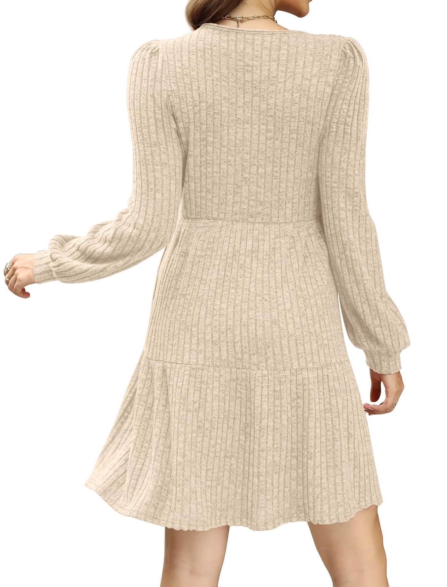 š„2025 HOT SALEš„Womens Square Neck Long Sleeve Fall Dresses Casual Babydoll Sweater Dress