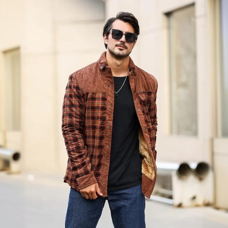 Dreading the damp cold that gets into your bones? Our Corduroy Sherpa-Lined Shirt Jacket is the ultimate shield. It blends the rugged texture of corduroy, the timeless charm of plaid, and the cloud-like embrace of sherpa fleece, creating one powerhouse layer for crisp autumn days and frosty winter adventures.
