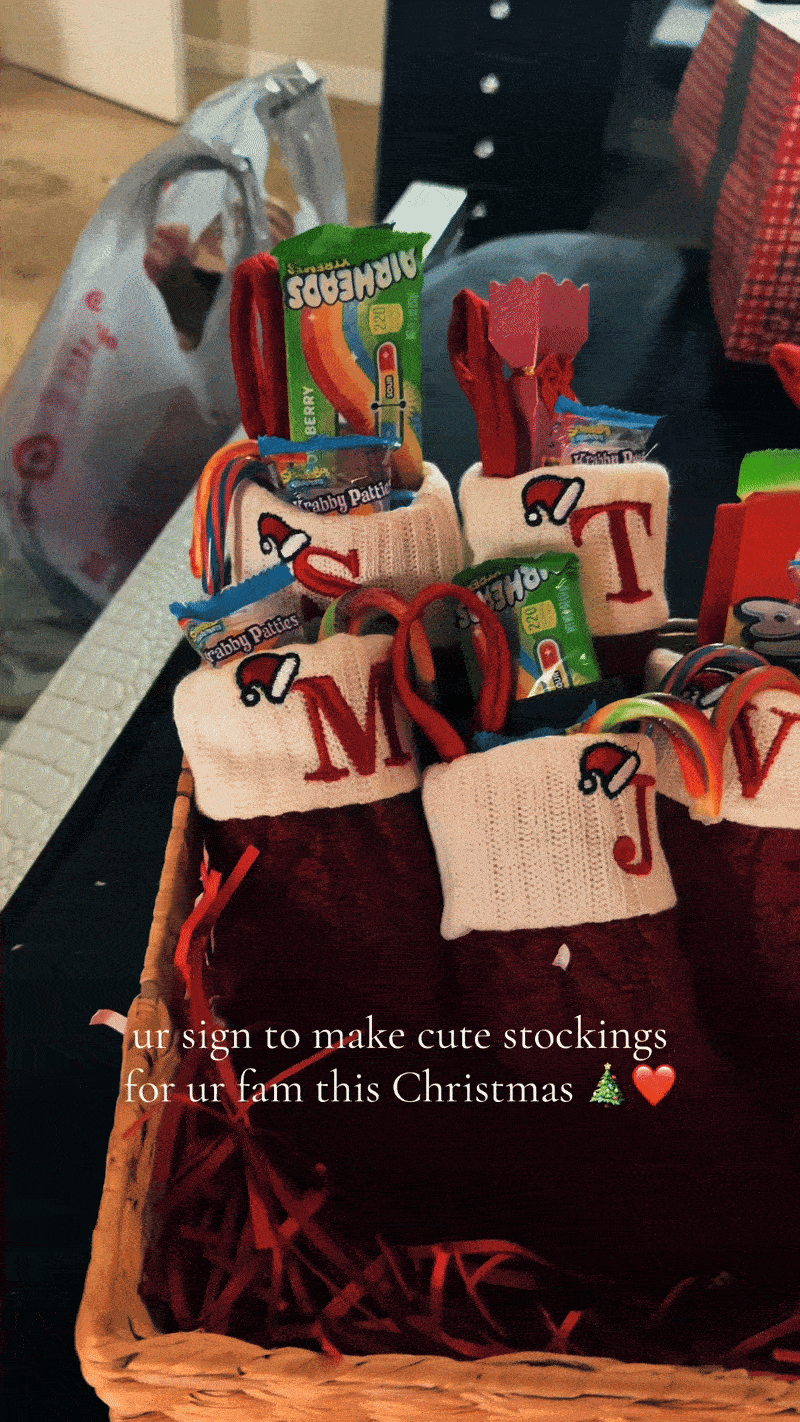 - Family Christmas Eve:In a cozy home, the whole family hangs their letter-customised Christmas stockings by the bedside. The children wait eagerly before bed, and the parents fill them with small gifts. The surprise of Christmas morning starts with this exclusive stocking.